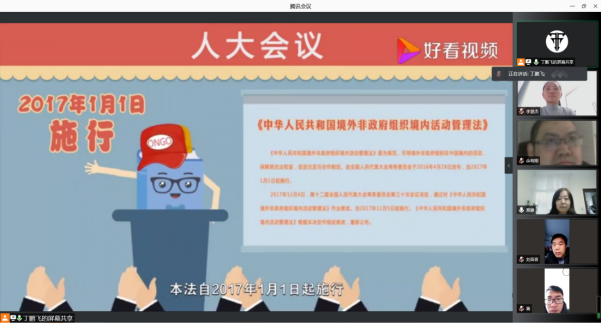 会上,马春燕带领大家学习了《中华人民共和国境外非政府组织境内活动管理法》的相关内容。她向大家强调,《中华人民共和国境外非政府组织境内活动管理法》是将境外非政府组织在我国境内的活动纳入法治轨道,推行全面依法治国,建设法治社会的必然要求。