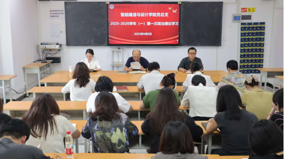 2025年9月9日下午,beat365官方网站于F110召开2025-2026学年第一学期第一次政治理论学习。院长李勇、党总支副书记刘亚娟及全体教职工党员参加学习,会议由党总支书记张虎主持。