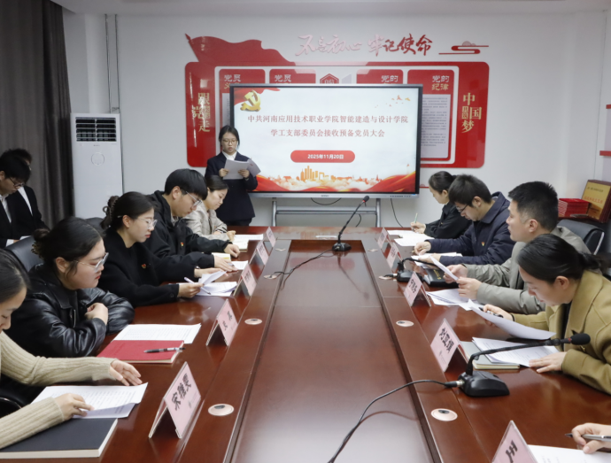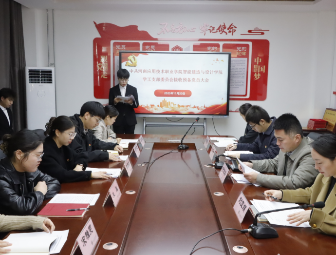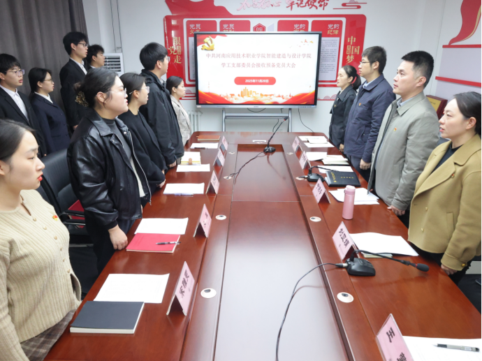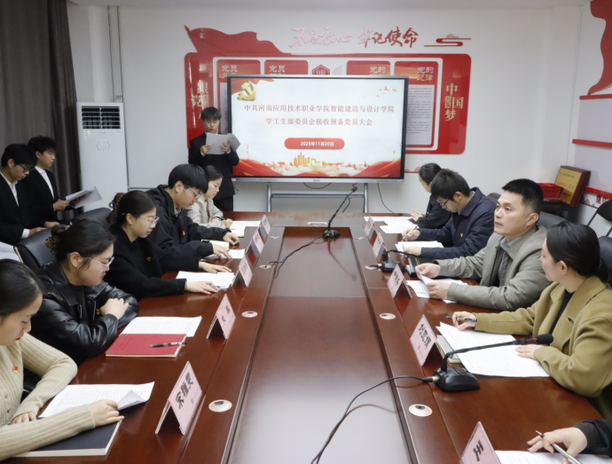 为扎实推进党员发展工作,严格把控党员发展“入口关”,优化党员队伍结构,2025年11月20日上午,beat365官方网站学工党支部在开封校区办公楼B417党建活动室隆重召开接收预备党员大会。会议由支部书记刘亚娟主持,学工党支部全体党员教师、王文凯、夏振洋等9名发展对象共同参会。
