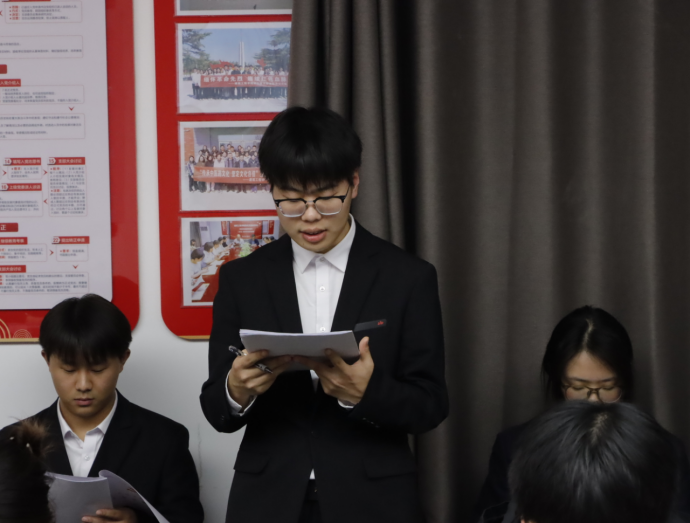 入党介绍人张慧、李慧杰、黄梦娜依次发言。她们结合日常培养情况,从思想动态、学习态度、工作表现和生活作风四个方面介绍发展对象,充分肯定其考察期内的积极转变,一致认为全体发展对象政治立场坚定、思想觉悟高、作风务实,已具备党员基本条件,郑重建议党组织接收。