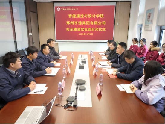 学院在宇通集团实习学生代表分享了实习体会。双方党组织代表正式签订《党建联建协议书》,共同为“现代学徒制实训就业基地”和“党建共建驻企工作站”揭牌。双方将本着“资源共享、优势互补、深度融合、协同发展、互利共赢”的原则,共同为培养高技能人才、服务区域经济社会发展贡献力量。
