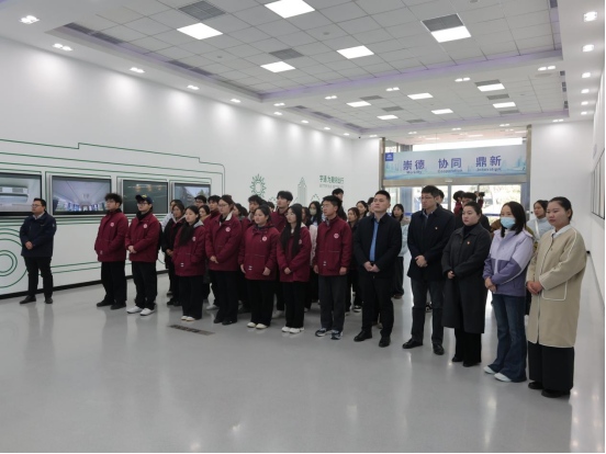 宁晓冬肯定了集团在接纳培养学生方面的社会责任感,赞扬了集团在传帮带方面的务实作风,详细介绍了学院党总支在强化政治引领、夯实组织基础、推动“党建+专业”融合等方面的积极探索与实践成效。
