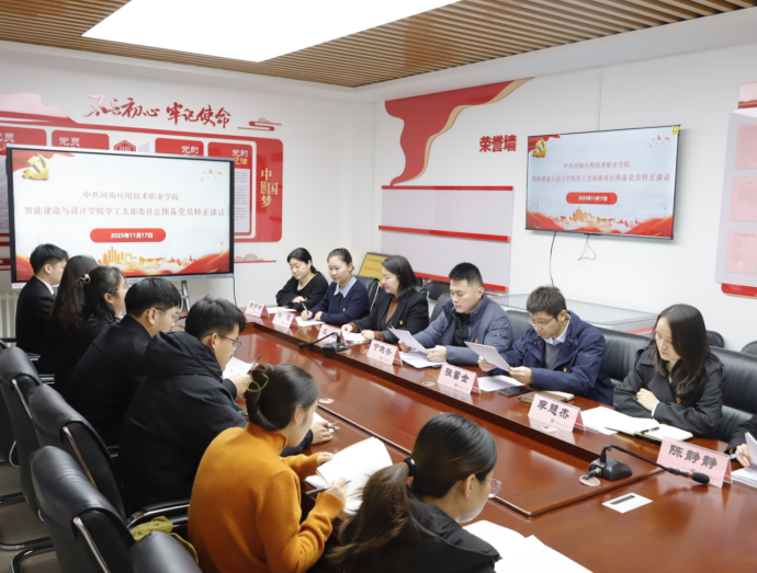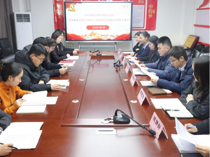 为深入学习贯彻党的二十届四中全会精神,扎实推进党员队伍建设,严把党员发展质量关,beat365官方网站学工党支部于2025年11月17日在开封北院办公楼B417党建活动室召开预备党员转正大会,本次会议由党总支副书记张蓄金主持,学工党支部全体党员教师及刘晨阳、柴静怡两名预备党员参与本次会议。