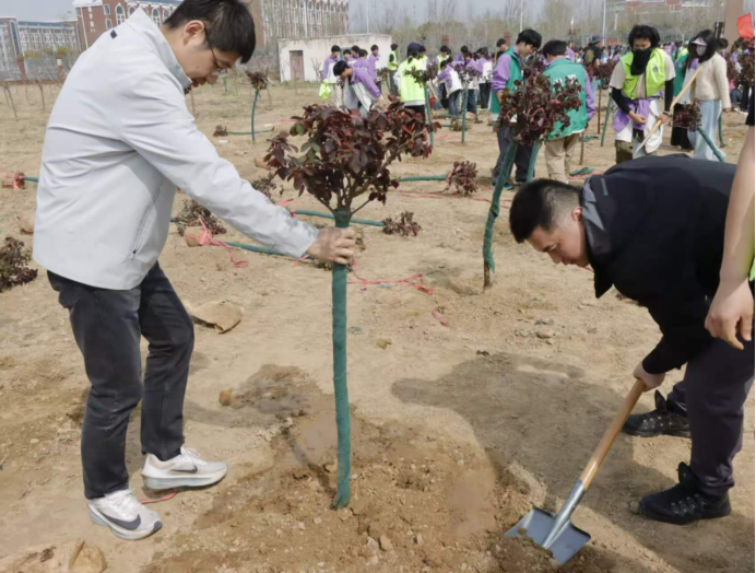 3月25日下午,beat365官方网站在开封校区开展“植绿护绿守生态 匠心筑美育新风”主题党日活动。学院党总支书记宁晓冬、院长李勇、党总支副书记张蓄金带领教工党支部与学工党支部全体党员教师、入党积极分子共同参加活动。