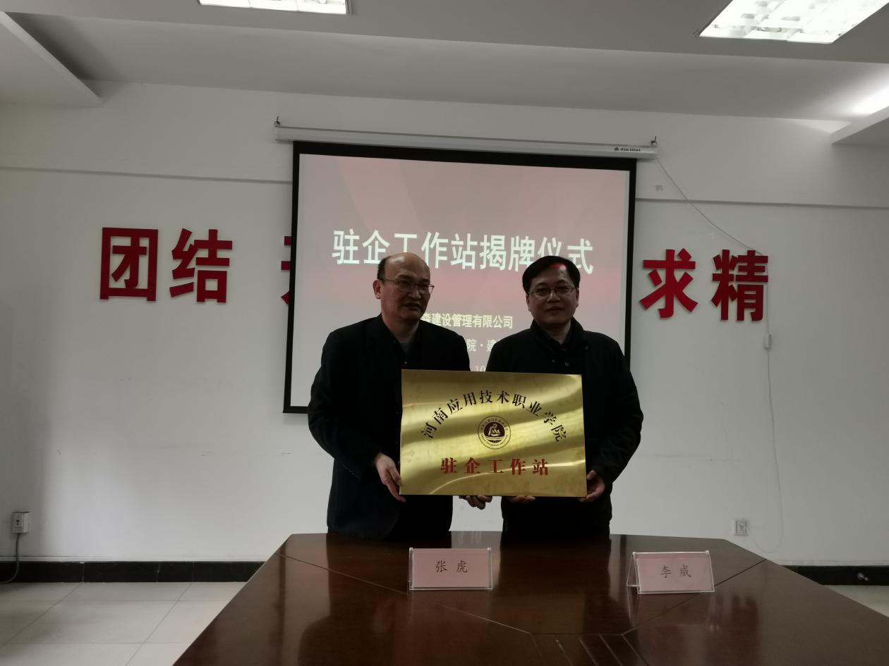李威董事长对学院领导及老师们的到来表示热烈欢迎,对校企双方的合作表示充分的肯定。随后,校企双方在深化校企合作产教融合研讨会上进行了深入探讨,对今年教师企业实践和学生顶岗实习安排进行沟通,并基本达成一致。最后,双方代表在驻企工作站合作协议上签字并为“河南应用技术职业学院驻企工作站”挂牌。