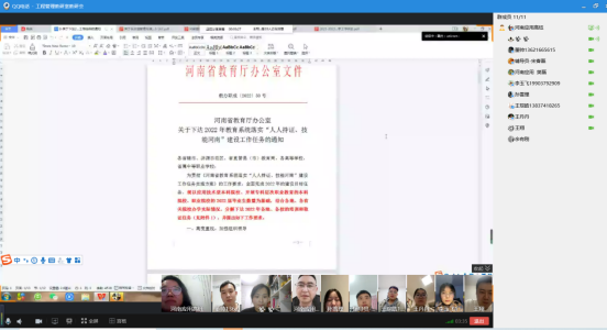 会议上,全体教师共同讨论了关于“人人持证、技能河南”的工作任务。关于20级学生1+X考证相关工作内容讨论和安排,落实参与1+X工程造价数字化应用、建筑工程识图和建筑模型信息化技能等级证书的学生考试人数以及考试等级。