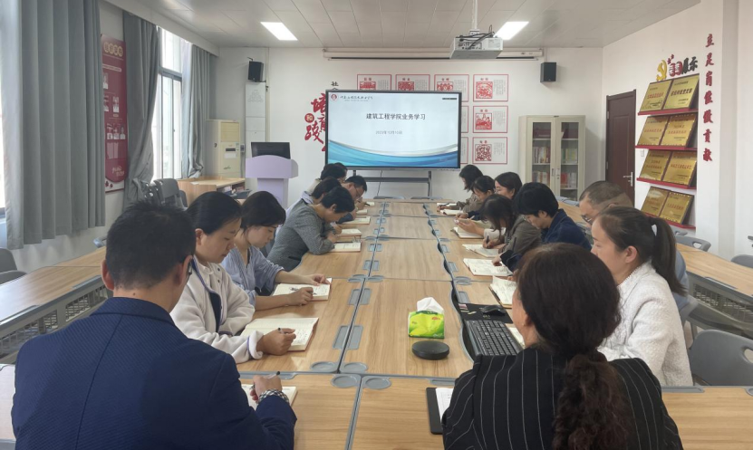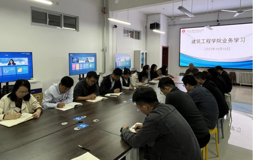 2023年10月10日下午,建筑工程学院组织开展2023年秋季学期第三次业务学习活动,本次学习采取郑州校区A516与开封北校区C104远程视频连线,线上、线下相结合的方式进行,会议由建筑工程学院院长张虎主持,学院党总支书记马春燕和全体专兼职教师参加会议。