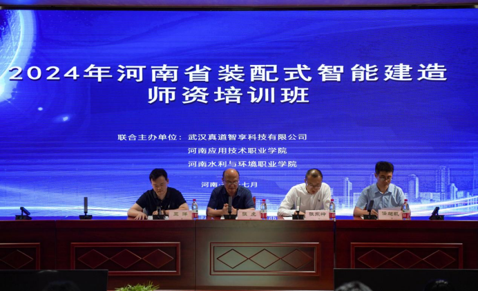 2024年7月5日至6日,经过学校审批和教务处、后勤处、保卫处等部门的大力协助,由河南应用技术职业学院建筑工程学院、继续教育学院联合河南水利与环境职业学院、武汉真道智享科技有限公司共同主办的“2024年河南省装配式智能建造师资培训班”在beat365举行。beat365建筑工程学院书记张虎、副院长任旭凯、河南水利与环境职业学院土木工程系主任张东岭、武汉真道智享科技有限公司技术总监王洋等领导出席相关仪式,来自河南省内的57名高职高专教师、选手参加此次培训。开班仪式由任旭凯主持,张虎书记代表学校表达了对远道而来的各位领导、老师的欢迎。