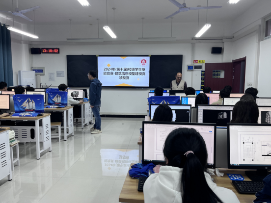 2024年10月29日下午,河南应用技术职业学院2024年(第十届)校级学生技能竞赛“建筑信息模型建模赛项”顺利举办。本赛项由建筑工程学院承办,张虎书记、李勇院长和任旭凯副院长全程指挥,董帅、王翔、高钰三位老师指导,在E204实训室如期举行。