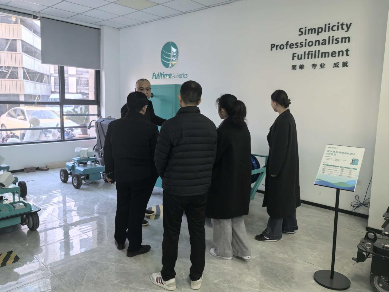 在丰坦机器人监事张可的引导下,调研组首先参观了企业展厅与研发中心,近距离观摩了建筑机器人全系列产品矩阵的实战演示。技术团队现场演示了机器人从BIM模型导入、路径规划到自动化施工的全流程。