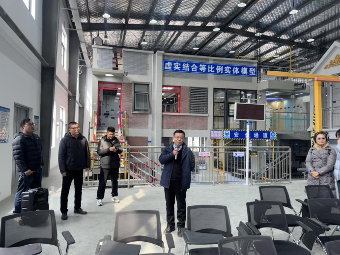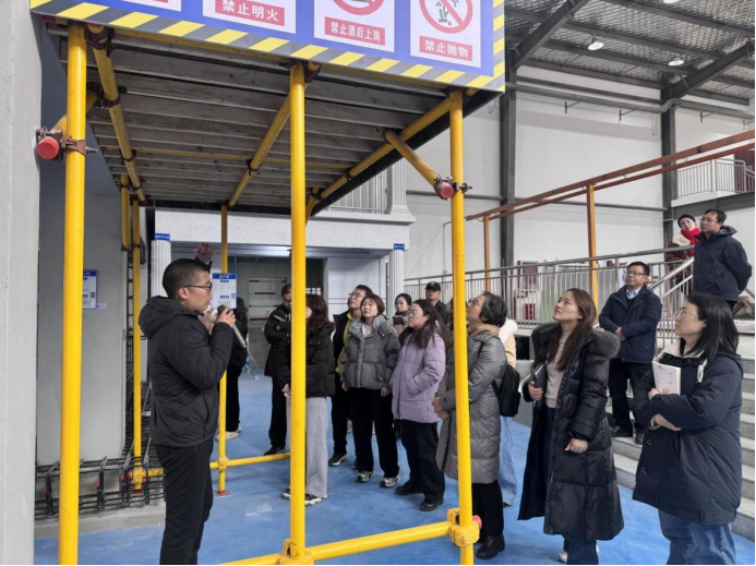 本次培训由河南建科软件技术有限公司培训讲师宋世波主讲。宋世波首先介绍了虚实结合等比例实体模型的基本概念、技术原理及其在教学与科研中的应用前景。在理论讲解之后,带领教师们参观了工法楼内的多个实训区域,并结合实体模型,详细讲解了建筑结构、施工工艺及安全管理等关键环节。