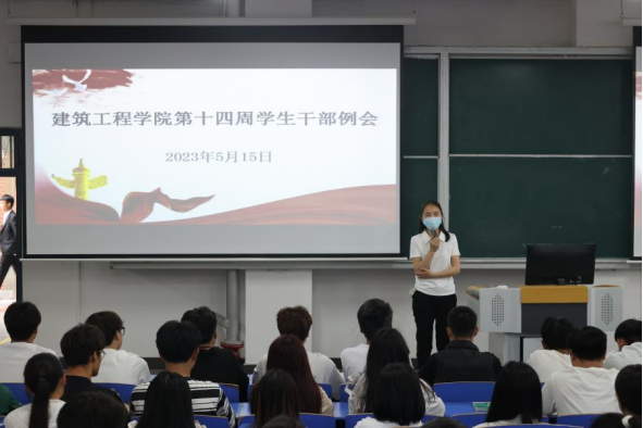 为提高学生干部积极性、主动性以及学生干部的综合素质,为学生提供更好的服务。2023年5月15日中午,建筑工程学院在郑州校区B102教室召开了第十四周学生干部例会。会议由建筑工程学院辅导员李慧杰主持,党总支副书记刘亚娟,辅导员李政、宋春磊、李玉飞、张慧以及22级学生会全体成员和各班班长、团支书参加此次会议。
