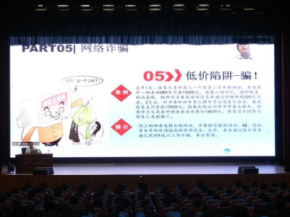 宋春磊围绕宿舍安全、网络安全、消防安全、财物安全、校外安全、人身安全五个方面,并结合工作经验,用幽默风趣的话语,列举众多典型事例,以同学们喜闻乐见的形式进行讲解,深入分析了在校学生人身和财产安全受威胁的原因,并提出了具体应对策略,提醒同学们在与不熟悉或身份不明的人员接触时一定要提高警惕、谨慎言行,不要轻易将个人信息透露给陌生人,更不要轻易相信对方,要保障自身安全。与此同时,他还倡导同学之间要和谐相处,相互宽容,以合法、合理、合情的方式解决分歧。