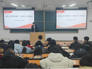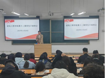 为进一步加强学生干部的自我建设,增强责任意识,增进各部门之间的交流,提高工作水平,建筑工程学院于2023年11月20日在郑州校区B102教室(开封校区A101教室)组织召开第十二周学生干部例会。会议由建筑工程学院学生会主席林朝阳主持,全体学生会成员、班长、副班长、团支书参加。