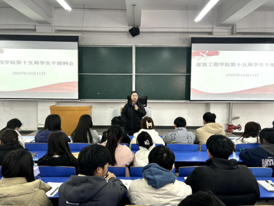 为提高学生干部先锋模范作用,调动学生干部积极性,引导学生干部明确工作方向和工作重点。2023年12月11日,建筑工程学院在开封校区A101(郑州校区B101)教室组织召开第十五周学生干部例会。会议由建筑工程学院党总支副书记刘亚娟主持,团总支书记王莹、学工办主任史真、辅导员赵影以及全体学生会成员、班长、副班长、团支书参加。
