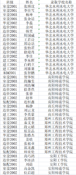 奋斗是青春最靓丽的底色,梦想是青春最缤纷的画卷。在2023年河南省普通专升本考试录取中,我院毕业生喜获佳绩!我院专升本报名321人,过线188人,录取180人,“专升本”考试上线率、录取率均创学院历史新高。其中,白鹤立、杨坤等17位同学被华北水利水电大学录取。尚巧鸽、赵雨欣、李佳欣、张萌等分别被安阳工学院、河南工程学院、河南城建学院、南阳理工学院等多所本科院校录取。向所有成功上岸的同学表示衷心祝贺!