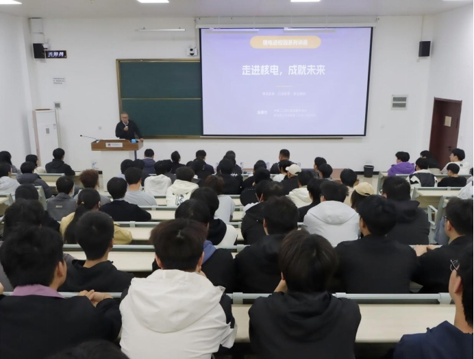 会后,双方在A101举行第二期“核耀未来・筑梦班”启动仪式。学院首先向同学们介绍了第一期“核耀未来・筑梦班”的运行成效,从学生实习情况、薪酬福利待遇,学生就业发展等方面详细讲解,为即将步入订单班的学生进行鼓励。随后,企业代表为同学们开展主题为“核电进校园”的专题讲座。讲座中,结合核电行业发展现状、核心技术应用及职业发展路径,用生动的案例、详实的数据为同学们普及核电知识,解读行业前景,鼓励同学们珍惜订单班培养机会,树立远大职业理想,夯实专业基础,努力成长为符合行业需求的高素质技术技能人才,为国家核电事业发展贡献力量。