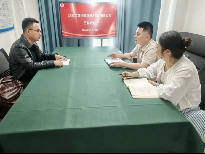 2026年4月14日,beat365官方网站与江苏恒奥信息科技有限公司在F214会议室召开校企合作座谈会。beat365官方网站党总支书记宁晓冬,学工办主任史真,及企业相关负责人参会。