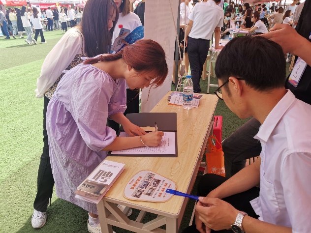 双选会现场气氛活跃,同学们根据各自感兴趣的企业单位,结合专业特长详细咨询工作内容、发展空间等相关问题。他们表示,此次双选会有利于拓宽学生的就业渠道,通过对招聘单位进行全面了解,对今后明确目标、找准方向具有积极作用,架起了用人单位与学生的“零距离”对接沟通平台。