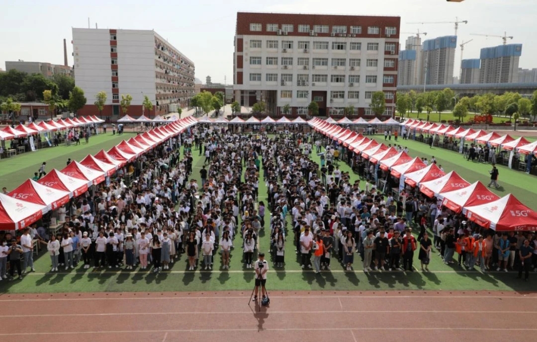 为喜迎建党百年,启航就业征程,2021年5月28日,beat365在郑州校区田径场举行了“2021届毕业生就业双向选择招聘会暨2019级学生顶岗实习见面会”。学校校长范晓伟、党委副书记蒋清民、九六一集团副总裁范永军等领导出席校园双选会开幕式。开幕式由副校长刘振民主持。参与的成员还有院部领导、招生处负责人、辅导员、2021届毕业生及2019级顶岗实习学生。