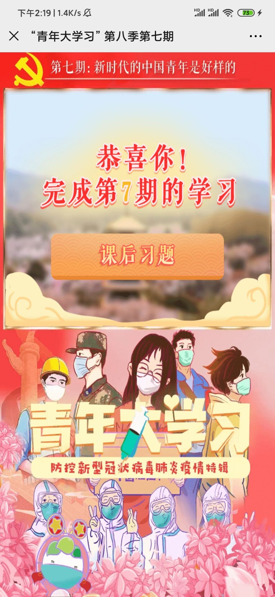 那就恭喜你已经完成了本期青年大学习