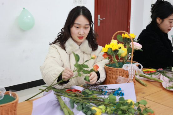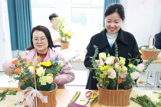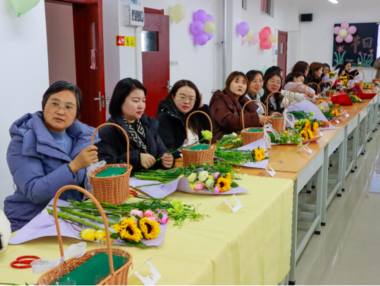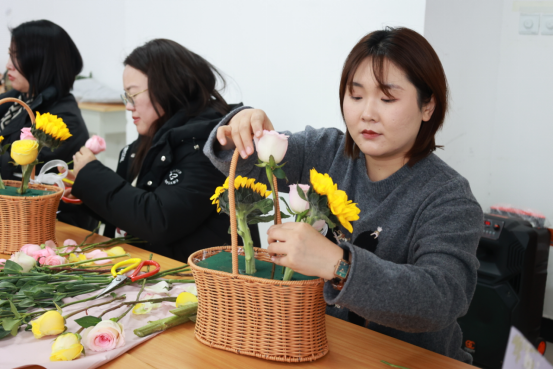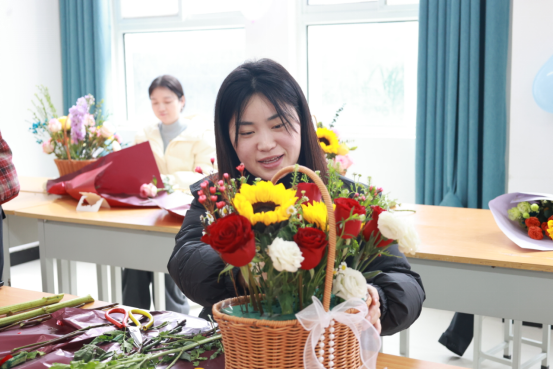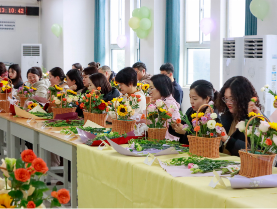 活动现场,馥郁花香弥漫,营造出温馨雅致的氛围。学院特邀专任教师岳锐金、李函,从花材的象征寓意、色彩搭配的美学原理,到修剪与造型的实操技巧,进行了深入浅出的讲解。实操环节,女教职工们热情高涨,充分发挥自身的创造力与想象力。她们精心挑选每一枝花材,仔细修剪每一片枝叶,凭借巧妙构思搭配色彩,将零散花材组合成一件件精美的花艺作品。此次插花沙龙,不仅让她们在繁忙工作之余得以放松身心,领略插花艺术的独特魅力,更在学院内部营造出尊重女性、关爱女性的浓厚氛围,这对于传承平等、和谐的校园文化,凝聚全体教职工的向心力,推动学院教育事业迈向新高度具有深远意义