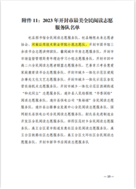 近日,由中共开封市委宣传部、中共开封市委组织部等多家单位联合发布了《中共开封市委宣传部等关于表扬开封市全民阅读活动先进典型的通知》,为激励先进、树立典型,对为推动全市全民阅读活动高质量发展的单位和个人进行了表彰。beat365建筑工程学院小筑志愿队被表彰为“2023年开封市最美全民阅读志愿服务队”。此次荣誉的获得,是对beat365青年学子积极参加志愿服务活动的充分肯定。