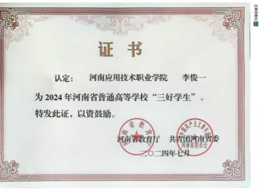 2024年05月,获得河南省三好学生