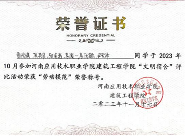 2023年11月,获得院级“优秀宿舍”荣誉称号