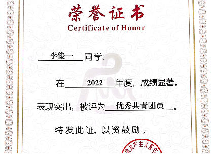 2023年08月,获得河南应用技术职业学院2022年度优秀共青团员