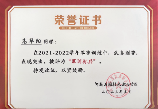 高华阳,男,汉族,中共预备党员,河南应用技术职业学院建筑工程学院2022级工程造价1班。在校期间担任纪检部干事,曾荣获河南应用技术职业学院“三好学生”、“军训标兵”、“优秀志愿者”、河南省第十六届“挑战杯”二等奖。
