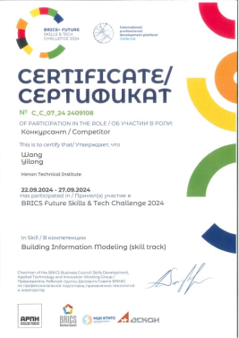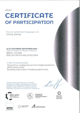 2024年9月 金砖国家职业技能大赛国际赛国际银牌、中国区金牌