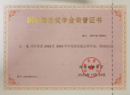 2023年9月 荣获国家励志奖学金