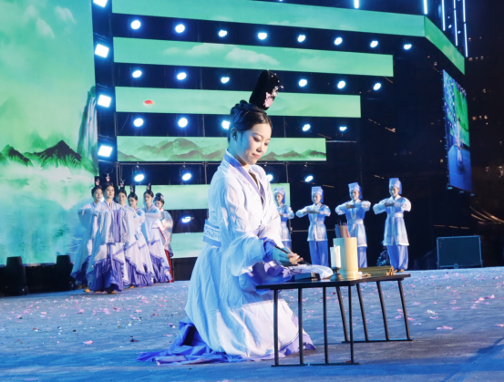 古琴低语,箫声穿林,光影流转间,仿佛再现孔圣讲学、诸子论道之景,仿佛天地共听,万古同观,这一刻,历史与现实在舞与乐中交汇,文明在肢体与音符间传承。