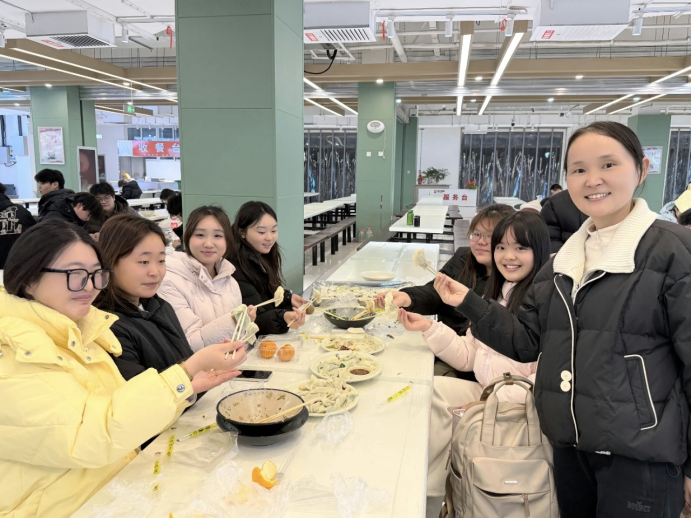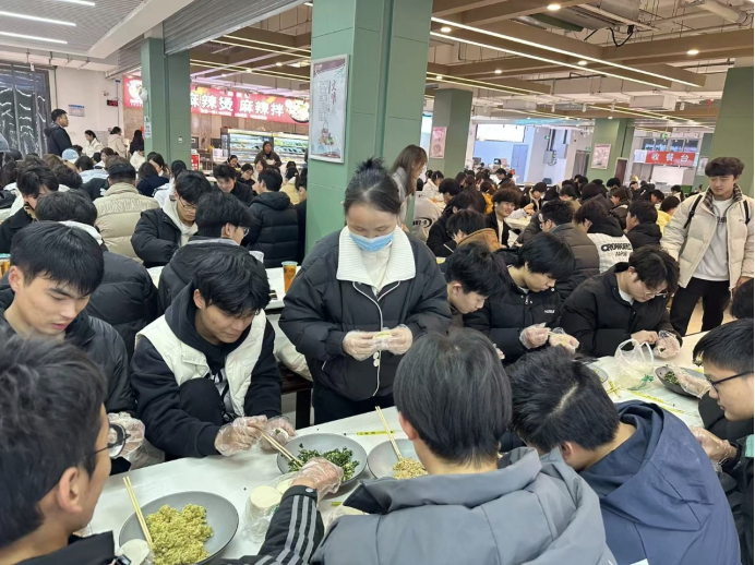 同学们的谈笑声交织成温馨的冬日乐章,平日里埋首专业学习的同学们化身“厨艺达人”,在包饺子的过程中分享冬至习俗趣事。陌生的彼此渐渐熟悉,安静的餐厅变成热闹的“大家庭”,当热气腾腾的饺子端上桌,鲜香的滋味与互帮互助的暖意,让远离家乡的同学们在校园里感受到了家的温暖。