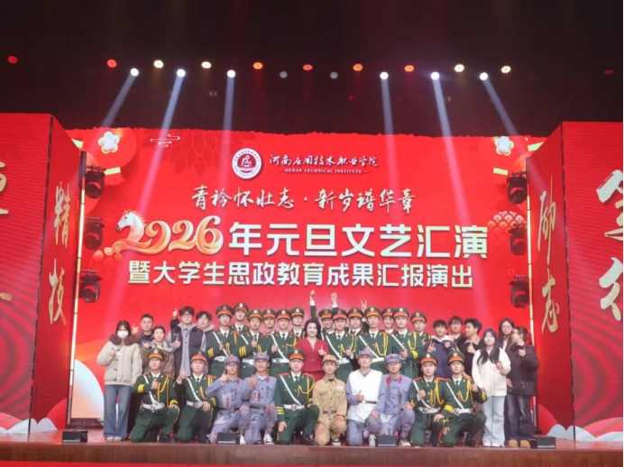 12月30日晚,河南应用技术职业学院“2026年元旦文艺汇演暨大学生思政教育成果汇报演出”在校园大礼堂隆重举行。在这场以“青衿怀壮志·新岁谱华章”为主题的文艺盛宴中,beat365官方网站演绎的情景舞蹈《旗帜》以其深刻的历史叙事和震撼的情感表达,成为整场演出的亮点。