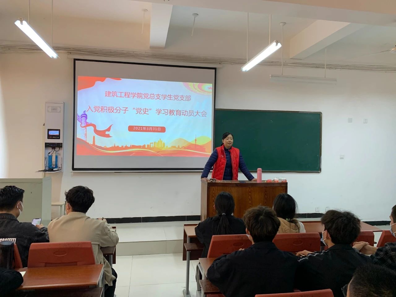 会上,支部书记马春燕同志讲到2021年是中国共产党成立100周年,是实施“十四五”规划、开启全面建设社会主义现代化国家新征程的开局之年,作为入党积极分子,一定要坚定理想信念,始终保持艰苦奋斗的前进姿态,要大力发扬孺子牛、拓荒牛、老黄牛精神,以不怕苦、能吃苦的牛劲牛力,以实际行动接受党组织的监督、教育和考验,从而尽快成为一名思想上行动上都合格的共产党员。接着以先进党史人物故事为切入点,带领大家共同回顾党带领中国人民不懈奋斗的光辉历程。希望学员们能够充分了解中国共产党的光辉历程,学习革命先辈“抛头颅,洒热血”的精神,积极向党组织靠拢,为国家与社会的发展添砖加瓦。