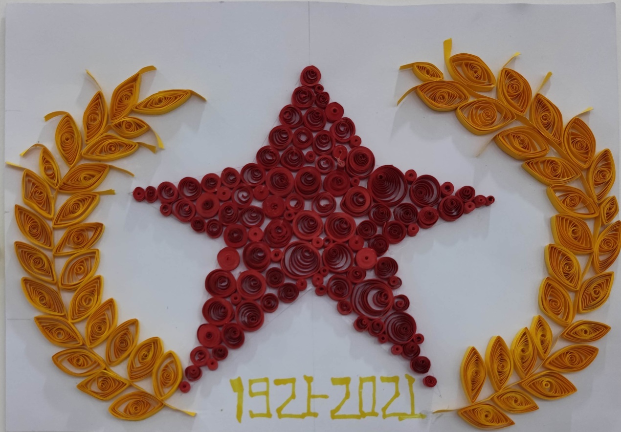 衍纸艺术,被称之为“指尖上的艺术”。它是通过卷曲、弯曲,捏压而形成原始设计形象的一门折纸艺术,非常考验制作者的耐心和动手能力。活动中,大家在衍纸艺术老师的指导下,兴致勃勃地动手制作各自的作品,尽管初次制作,手艺略显生疏,但在众人的通力合作中,以指尖的卷、捏、拼、贴组合,一幅幅幅生动灵巧的“党旗”、“党徽”、建党100周年标识等作品,用红色文艺作品献礼党的百年华诞。