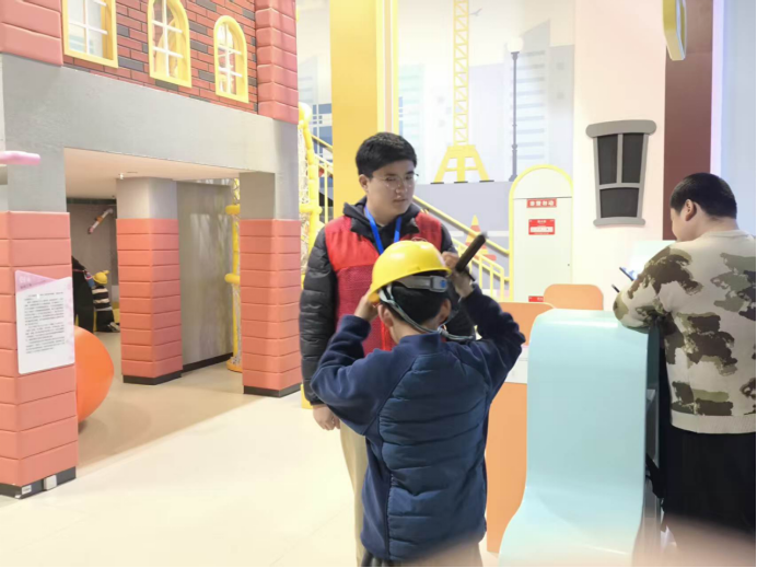 活动现场,小筑志愿者们身着统一志愿服装,以饱满热情投入服务工作。在电磁现象展区,志愿者们结合趣味实验与专业知识,为不同年龄段参观者精准科普电磁与建筑知识,通过现场操作演示,让观众直观感受电磁技术在智能建造中的实际应用;在建筑科技模拟展区,志愿者们细致排查设备状态,耐心引导青少年参观者操作体验,用通俗语言讲解科技与生活、建筑的联系,让每位参观者都能感受科技魅力。此外,志愿者们还主动协助科技馆工作人员维护参观秩序、引导文明参观、解答各类咨询问题,为广大参观者营造了舒适、便捷、温馨的科技体验环境。