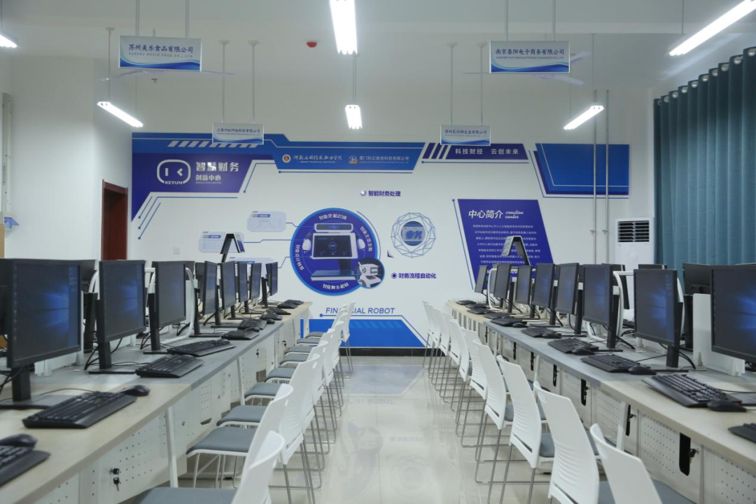 部分合作企业:2022年与新道科技股份有限公司校企共建“数智财经产业学院”,构建产学研用创深度融合的全链条、网络化、开放式协同育人机制,致力于为我省乃至全国培养财经数字化人才;与河南荣达财务管理公司、中国人寿保险公司等实施“引企入校”,在校内建立有现代学徒制工作坊;与银雁金融科技有限公司、中国银行 (昆山) 数据服务中心、建设银行 (武汉) 数据中心、河南创元财务服务集团有限公司、郑州华强文化科技有限公司、郑州希尔顿酒店、丽笙酒店集团、河南公路工程局集团公司、中原金融博物馆等建立有稳定的学生实习就业基地。