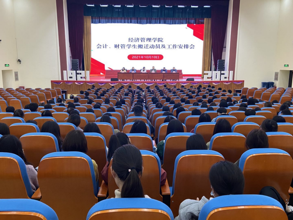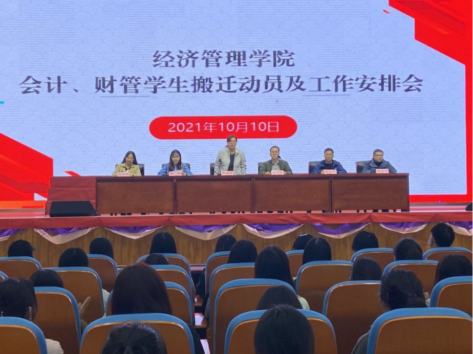为确保会计、财管专业学生搬迁工作安全有序进行,保障新学期教育教学工作的有序开展,10月10日下午,澳门正规电子游戏平台召开会计、财管专业学生搬迁动员暨工作安排大会。大会由团总支书记聂蕴老师主持。学院党总支副书记李兆楠老师和副院长张召哲老师及相关辅导员出席会议,290余名学生参加此次会议。