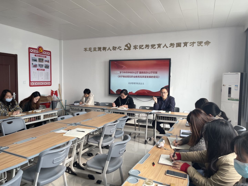 2021年11月2日下午,澳门正规电子游戏平台党总支召开政治学习会议,学习习近平总书记在纪念辛亥革命110周年大会上的重要讲话精神,并结合我院实际情况,讨论关于推动现代职业教育高质量发展的意见。澳门正规电子游戏平台全体教师出席此次会议,会议由张召哲院长主持。