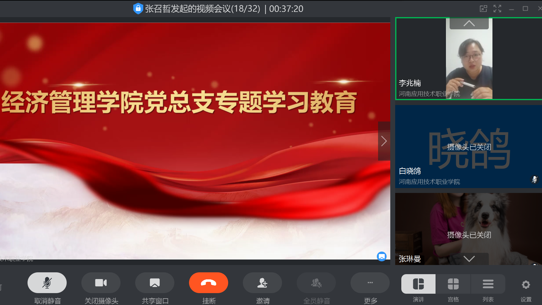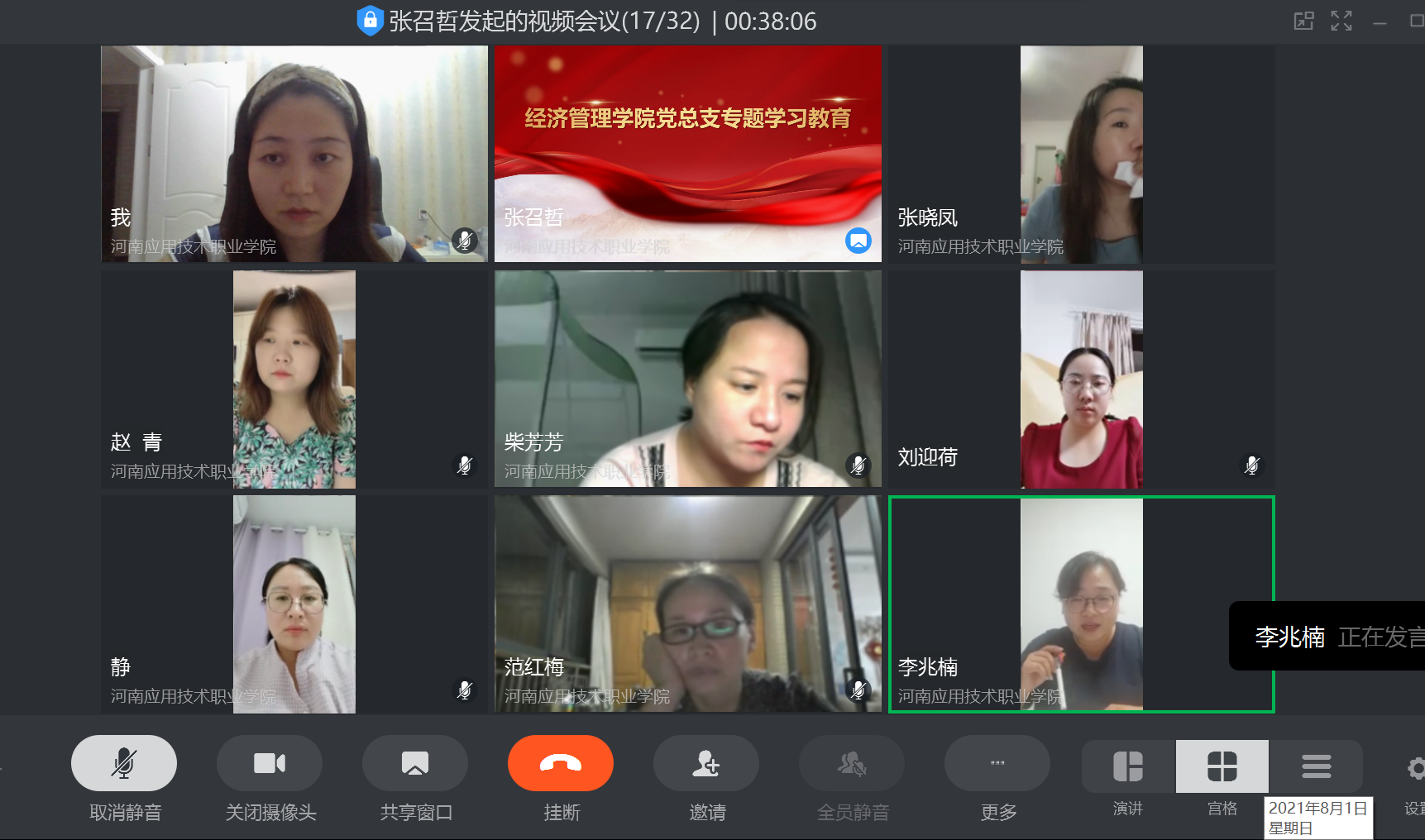 2021年8月1日晚,澳门正规电子游戏平台党总支利用钉钉平台组织全体党员教师召开专题学习教育会议。会议由党总支副书记李兆楠同志主持。