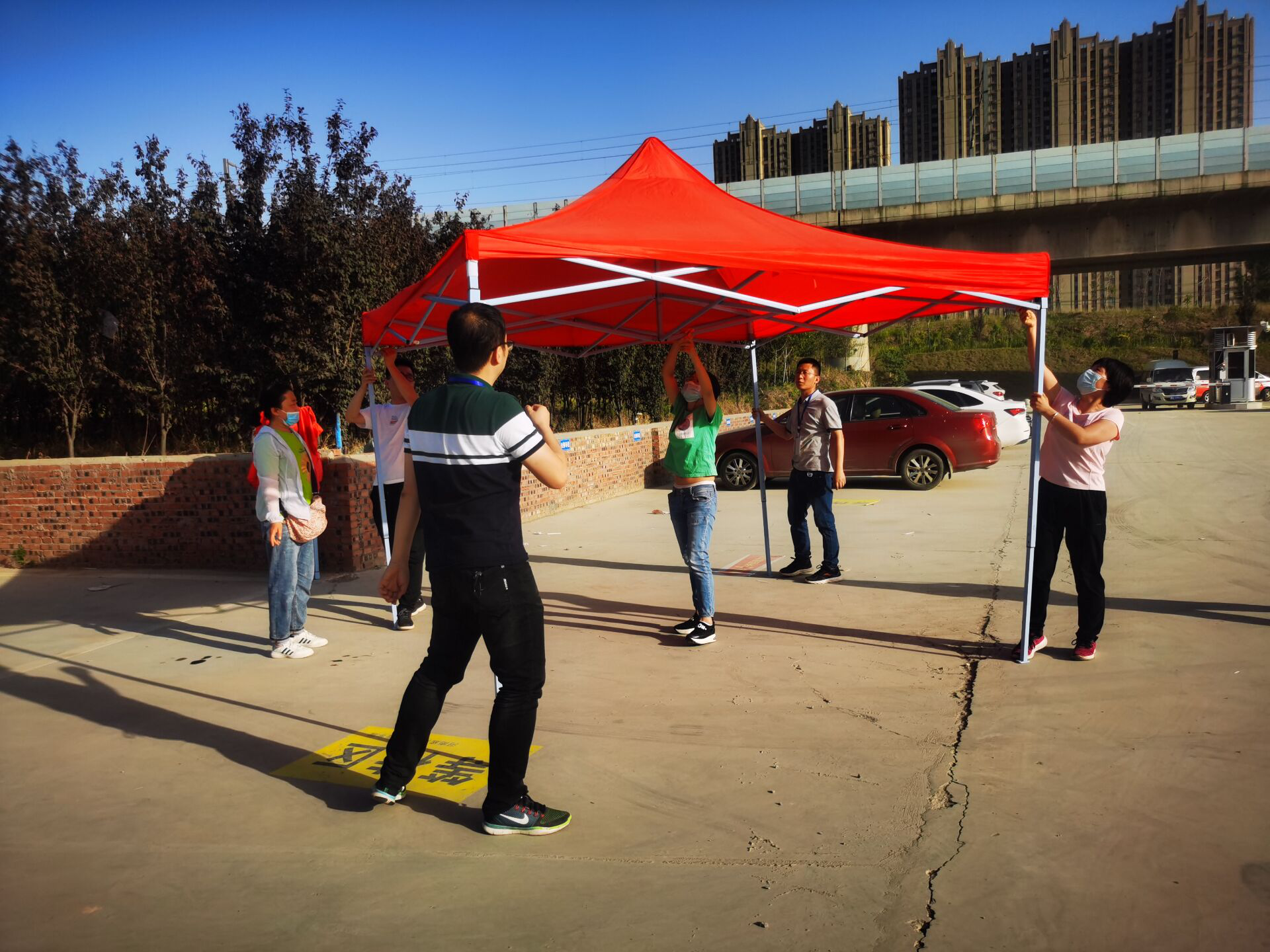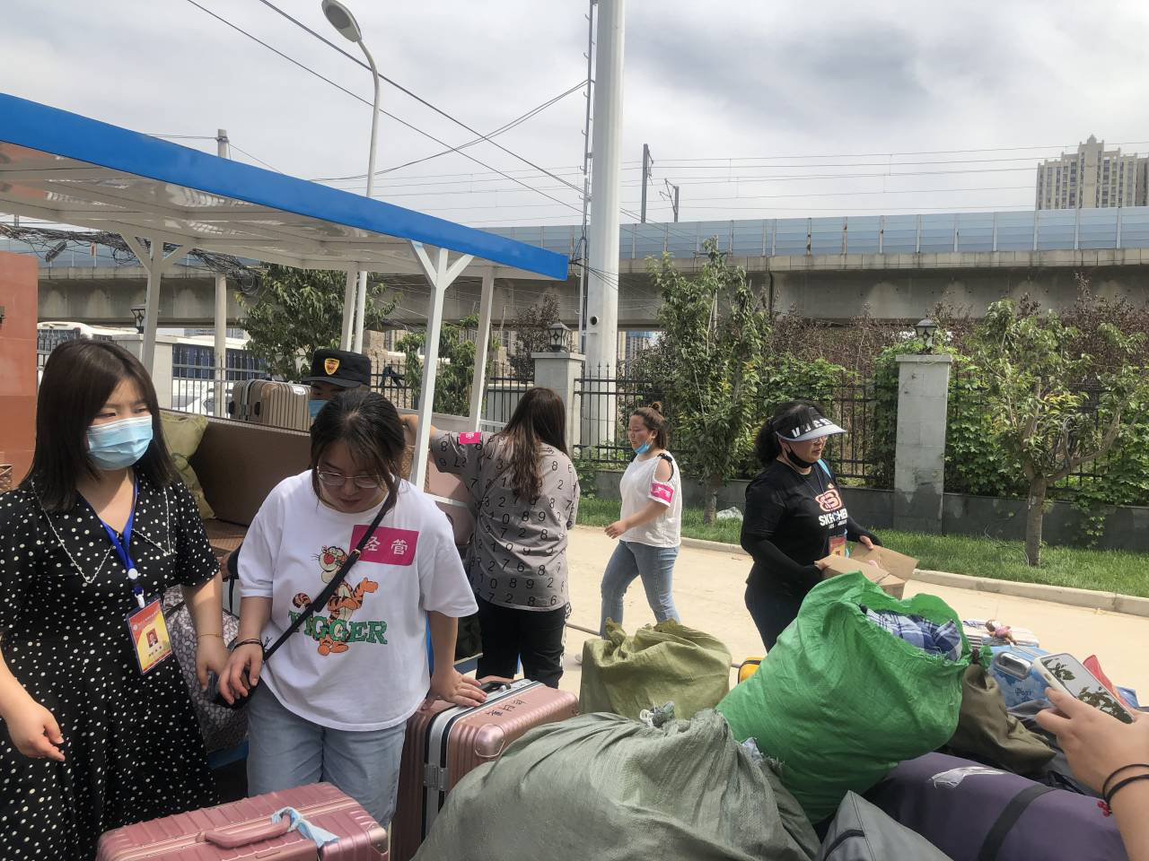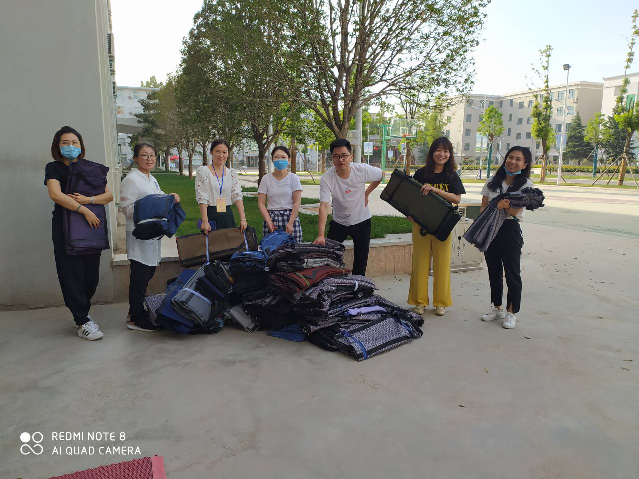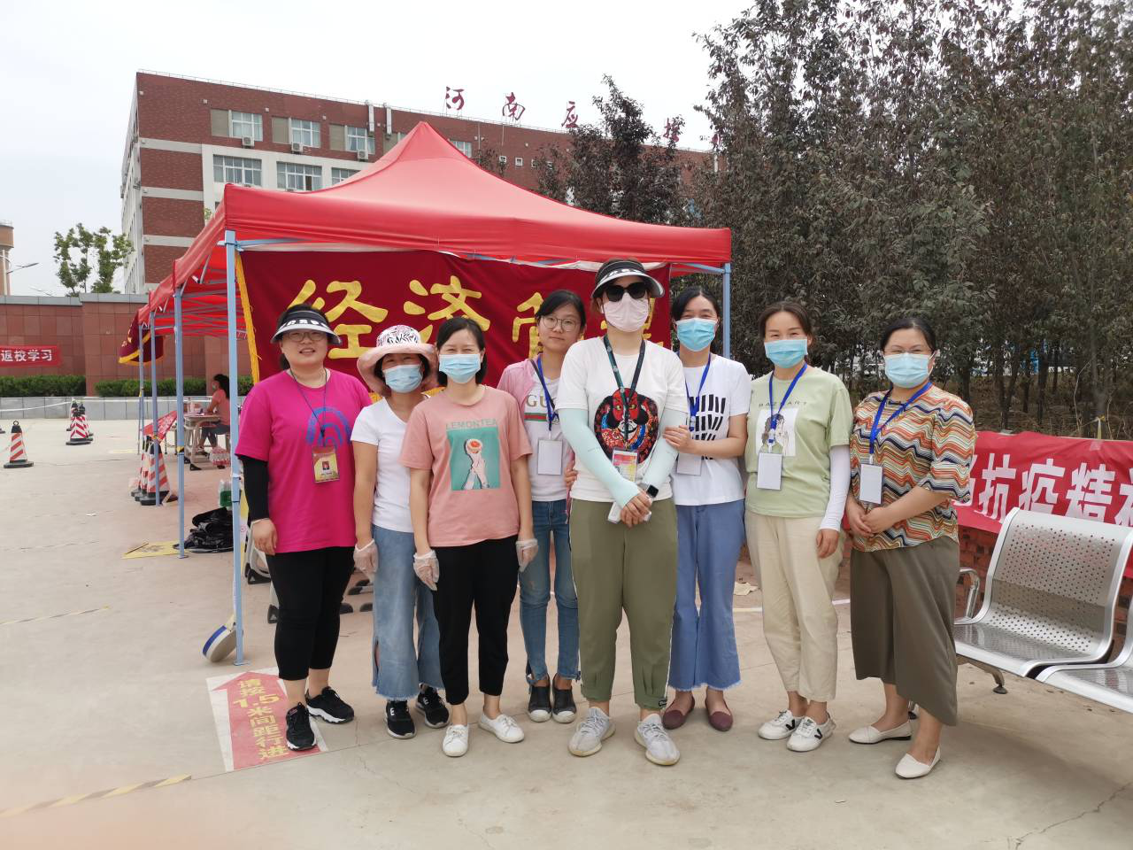 早上6:00,全体党员在学校南门集合完毕,党总支书记李兆楠同志作动员讲话。她指出一名党员就是一面旗帜,在此次主题党日活动中,大家要主动亮身份、当先锋,为返校实习学生打通“最后一公里”,为学校整体安全保驾护航。随后,全体党员老师就在学生返校实习报到点搭起了帐篷,设立了党员服务点,备齐了相关物品。服务点搭起后,全体党员以支部为小组,在指定的接待点,引导返校学生有序排队,进行体温检测、行李消毒、绿码查验、身份核实。进校后,到宿舍辅导员老师处报到办理相关手续,后党员教师利用电瓶车、手推车、三轮车等工具将学生的行李、物品搬运出宿舍。大家用热情周到的服务,不仅让返校学生感受到温暖,也为健康校园筑起安全防线。