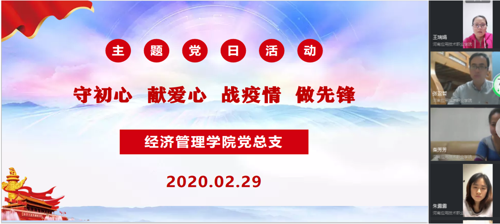 当前新冠肺炎疫情防控工作已进入关键阶段,为进一步学习落实习近平总书记关于新型冠状病毒感染肺炎疫情防控系列重要批示的指示精神,全面落实上级党委的部署要求,做好疫情防控期间基层党组织建设,充分发挥基层党组织战斗堡垒作用和党员先锋模范作用,澳门正规电子游戏平台党总支结合实际情况,以党支部为单位分别组织全体党员开展“守初心、献爱心、战疫情、做先锋”线上主题党日活动。