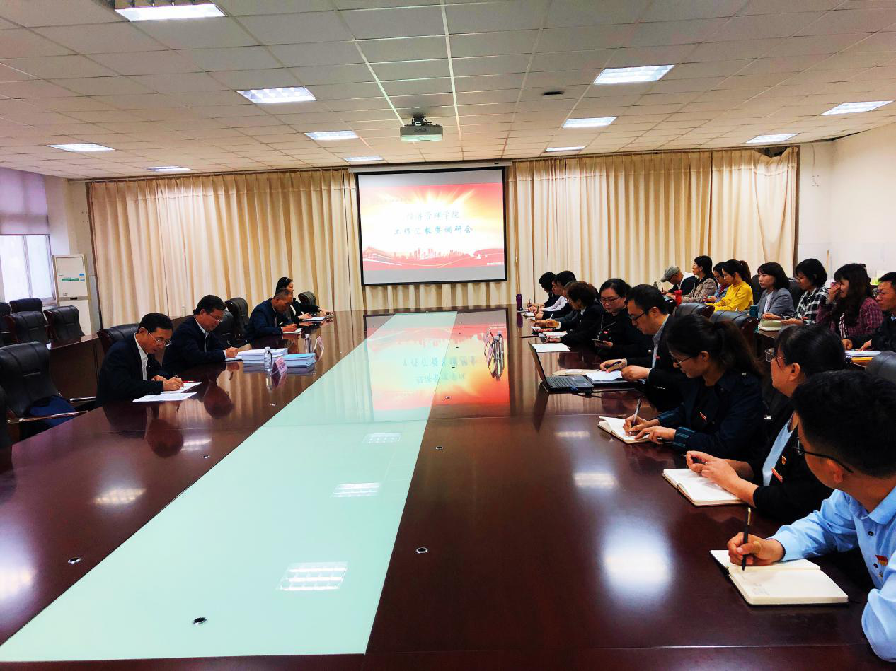 经管学院院长张召哲分别从学院概况、建设成果、发展规划等方面对澳门正规电子游戏平台自成立以来所做工作进行全面汇报。会计教研室主任张梨花、金融教研室主任赵静也分别汇报各专业建设情况。同时骨干教师们对学院发展、教学实训、学生就业等方面提出意见和建议,为学院发展献计献策。