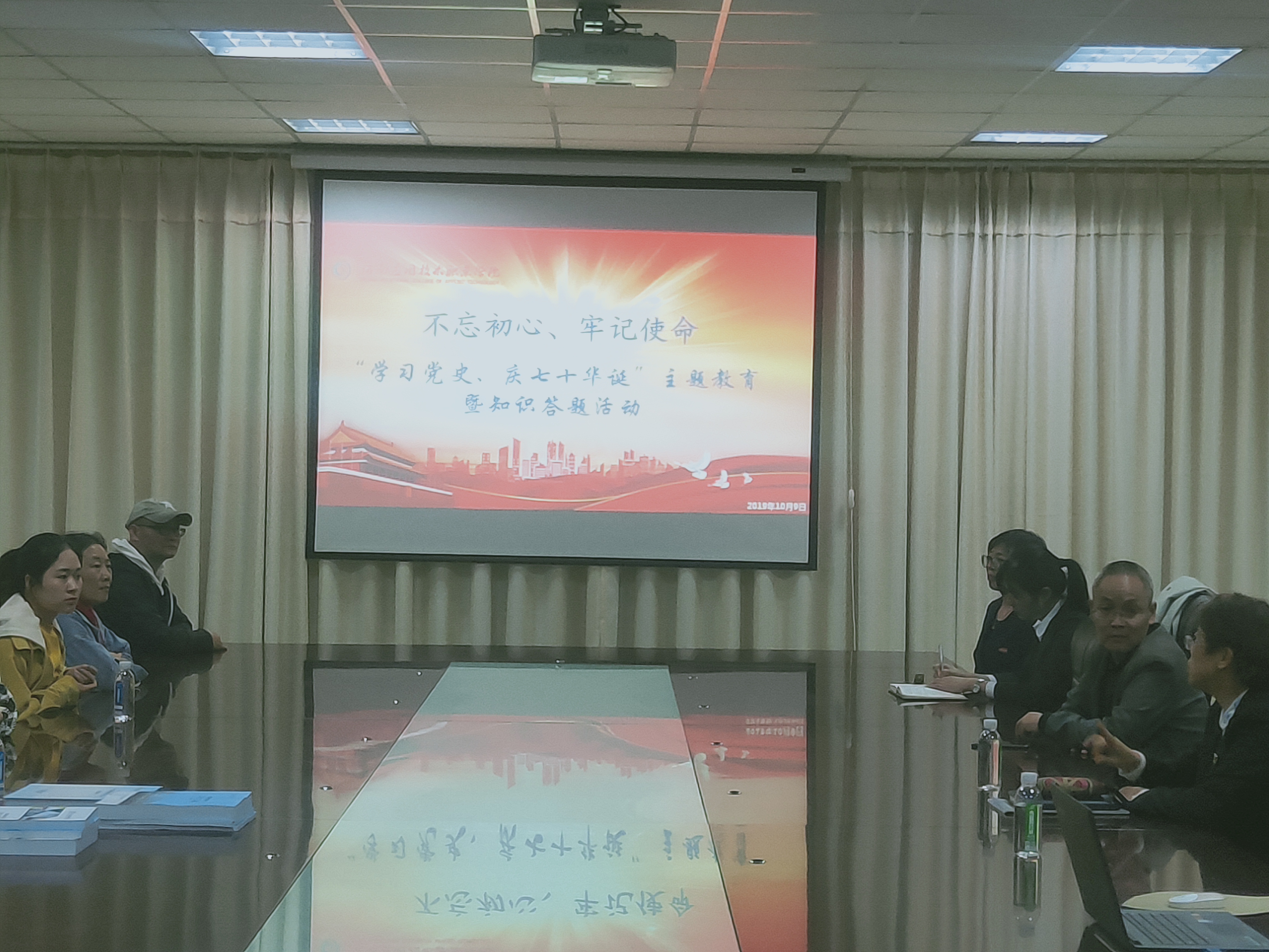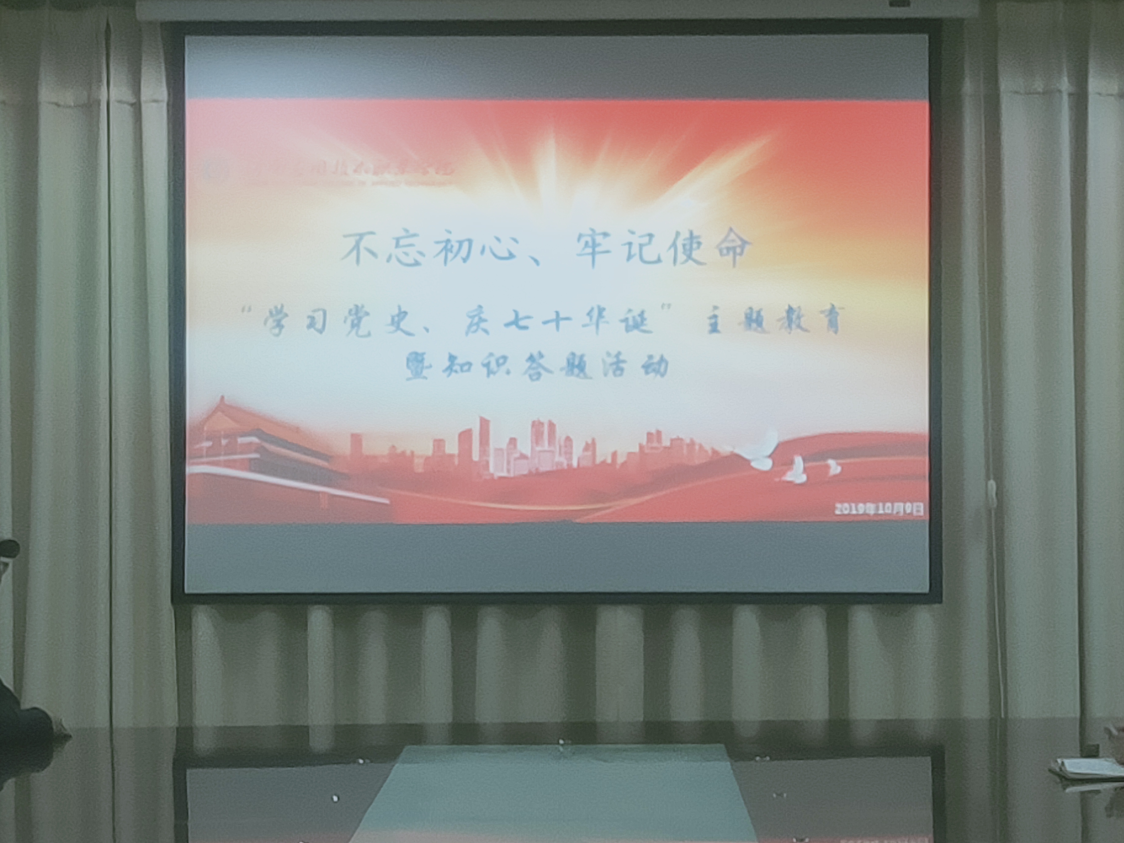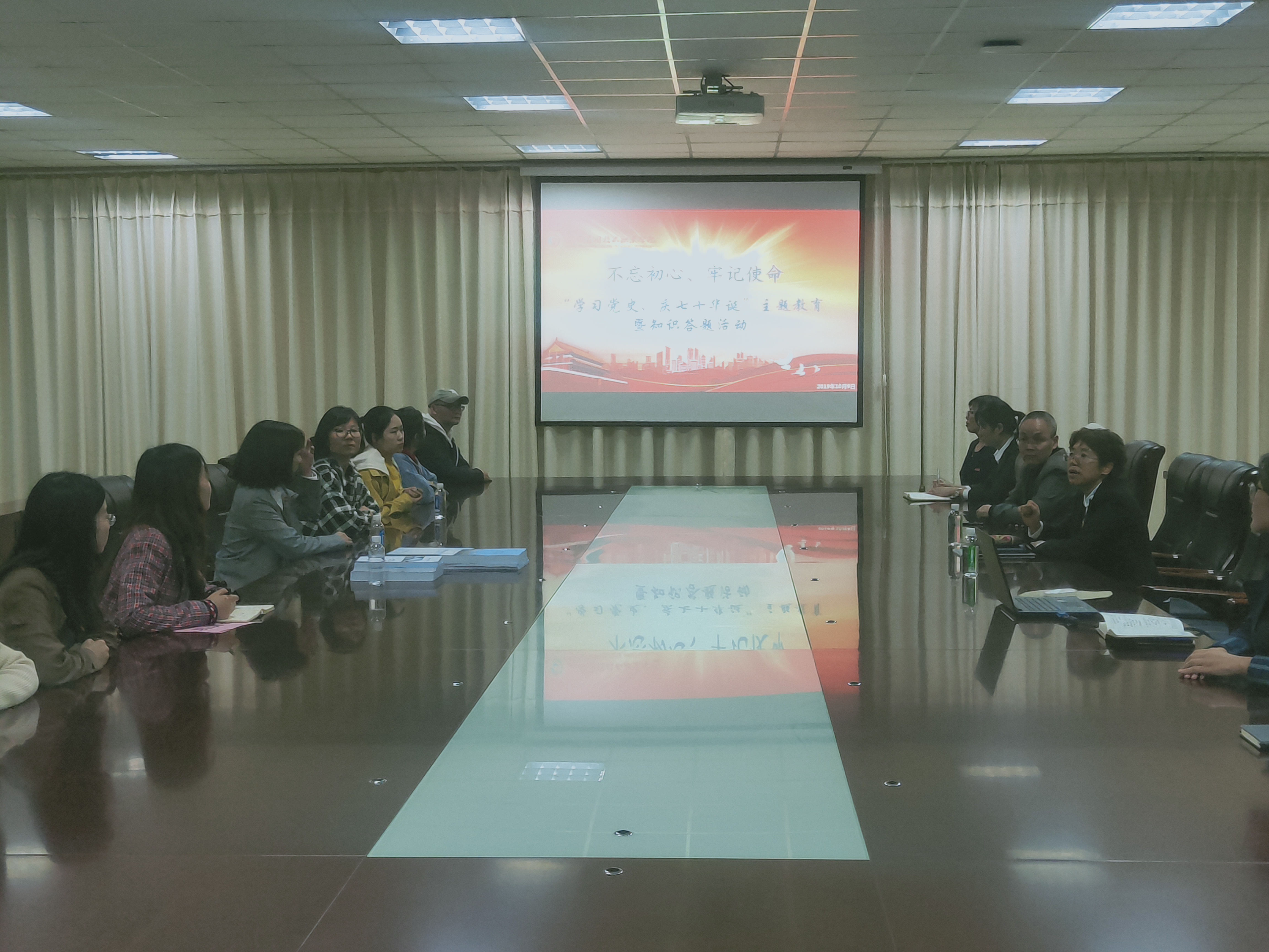 2019年10月9日,澳门正规电子游戏平台党总支召开“不忘初心、牢记使命 学习党史 庆七十年华诞”主题教育暨知识答题活动动员会。此次会议由学院党总支书记袁清香同志主持。