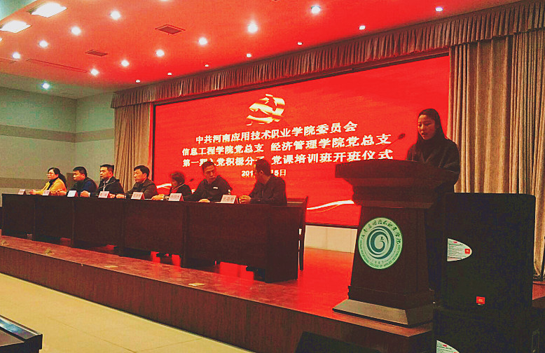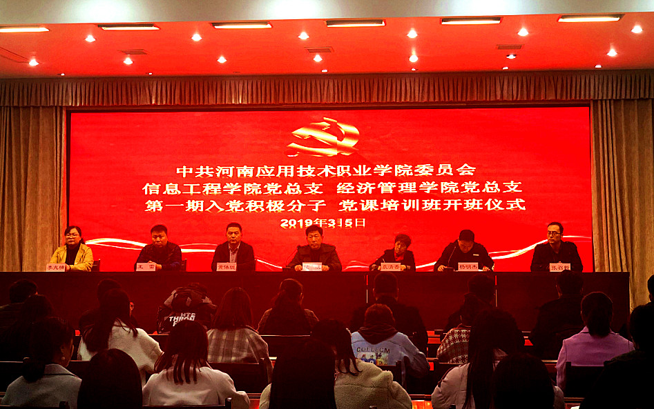 2019年3月5日下午,澳门正规电子游戏平台党总支、信息工程学院党总支第一期入党积极分子党课培训班开班仪式在实训楼二楼会议室隆重举行。两总支书记及全体支委委员、本期入党积极分子出席大会。信息工程学院党总支副书记杨明杰主持大会。
