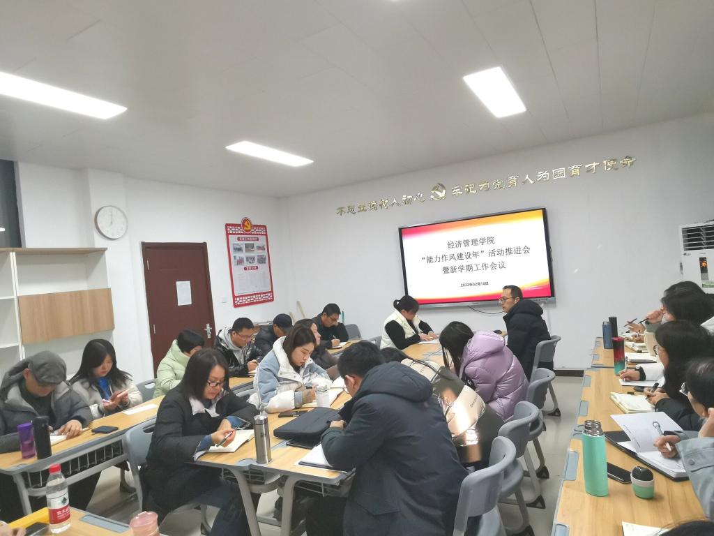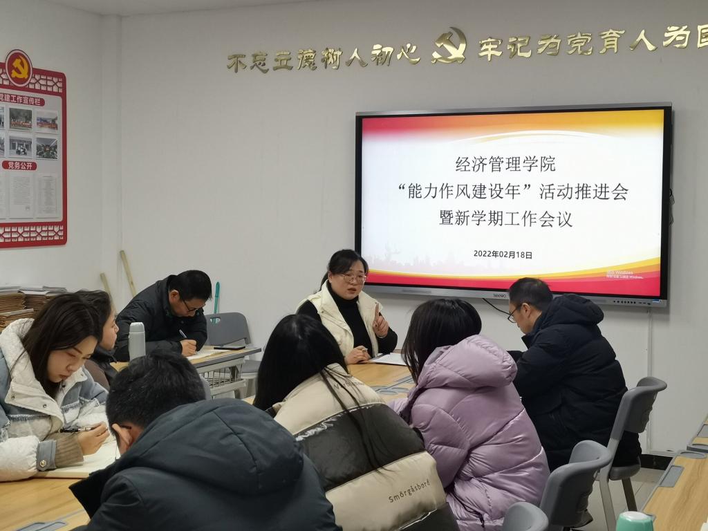 为进一步贯彻落实校党委关于“能力作风建设年”活动要求,深入推进此项工作开展。2022年2月18日,澳门正规电子游戏平台澳门正规电子游戏平台召开“能力作风建设年”活动推进会暨新学期工作会议,全面推进和安排部署我院“能力作风建设年”活动。会议由党总支书记李兆楠主持,全体教师参加了会议。