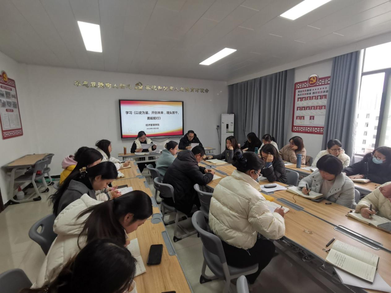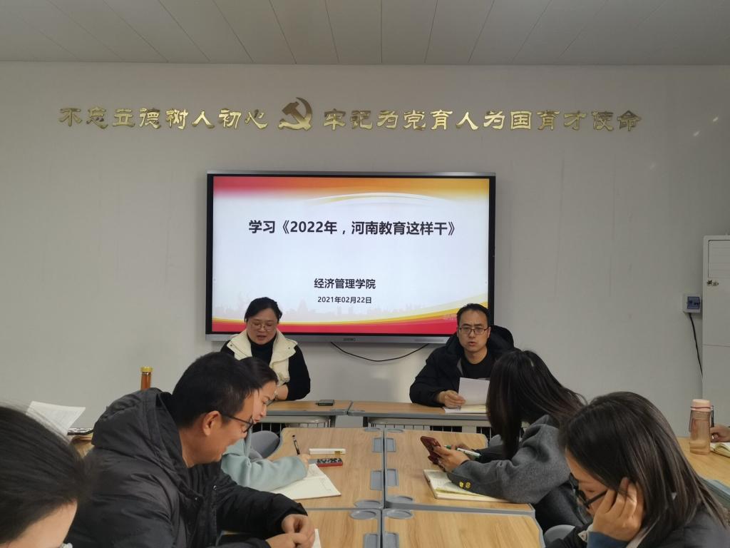 院长张召哲领学,全体党员及教师共同学习了习近平总书记2021年11月11日在党的十九届六中全会第二次全体会议上的讲话——《以史为鉴、开创未来,埋头苦干、勇毅前行》,以及1月22日河南省教育厅部署召开的2022年度教育工作会议内容。结合澳门正规电子游戏平台实际对省教育厅十项重点工作内容逐条解读。明确2022年工作方向!